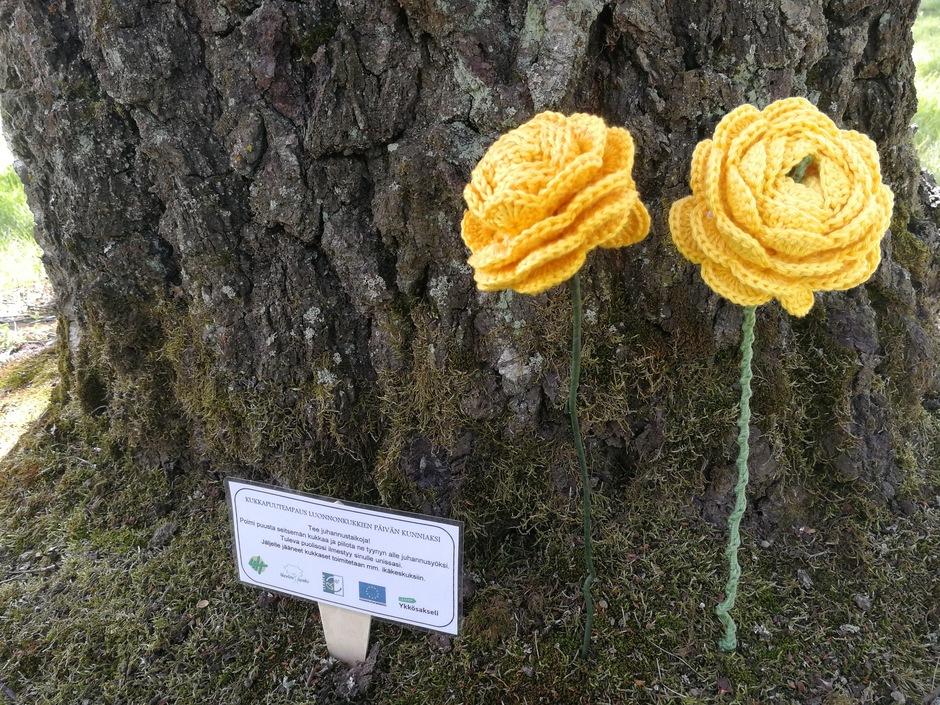 Salon 4H-yhdistys innosti kaikenikäisiä salolaisia luomaan hyvinvointia itselle ja muille virkkaamalla värikkäitä kukkasia. Käsitöiden tulokset ripustettiin Luonnonkukkien päiväksi 17.6.2017 Salon keskustassa Sibeliuksen puistossa kasvavan kauniin, vanhan koivun oksille.