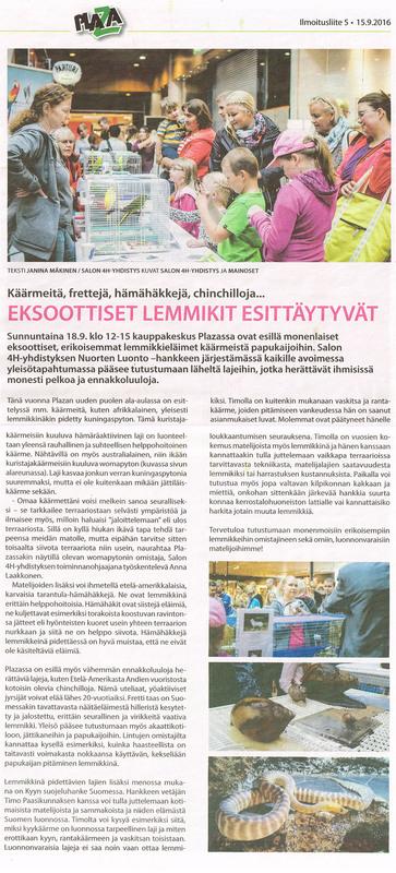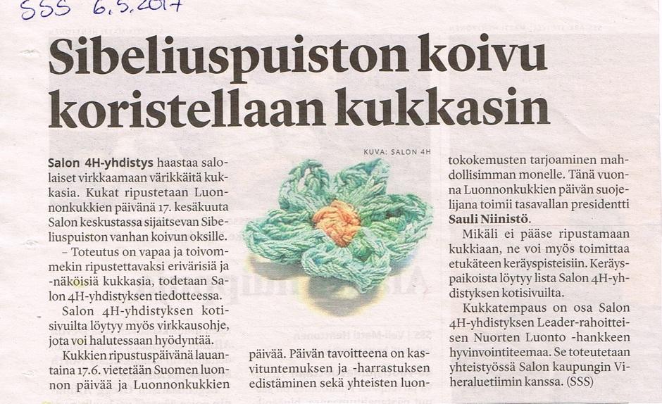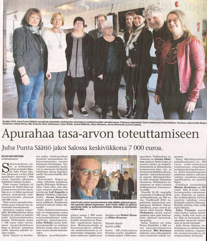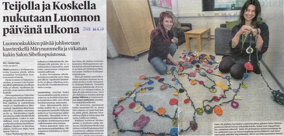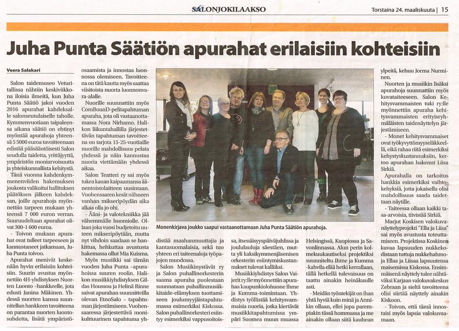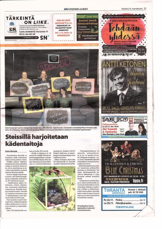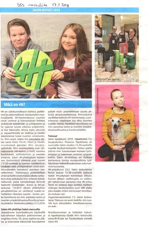 Juttua hankkeesta yhdistysesittelyssä Salon Seudun Sanomien Salon messuja esittelevässä messuliitteessä 17.1.2018.