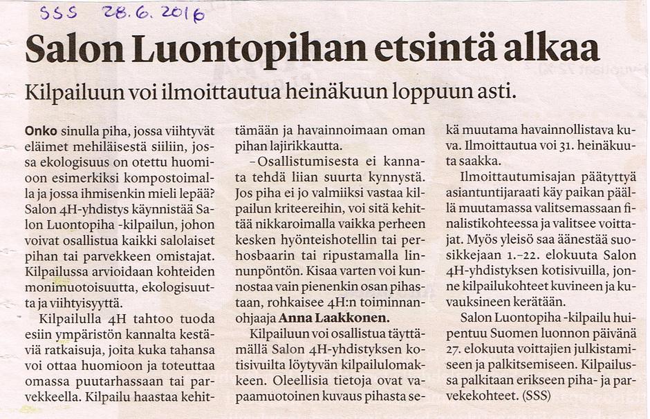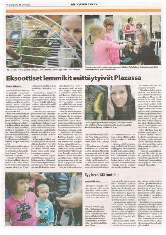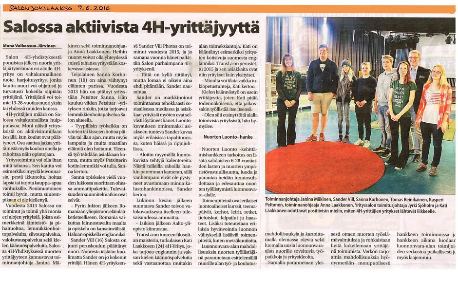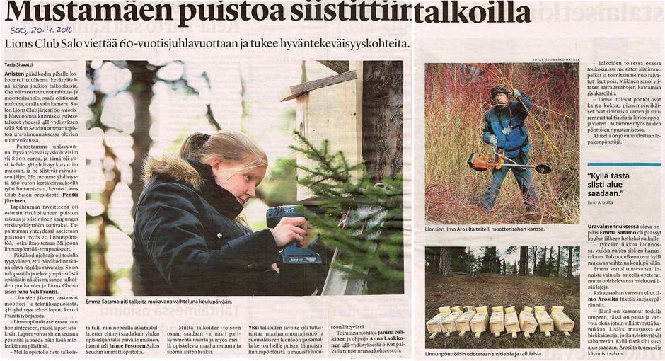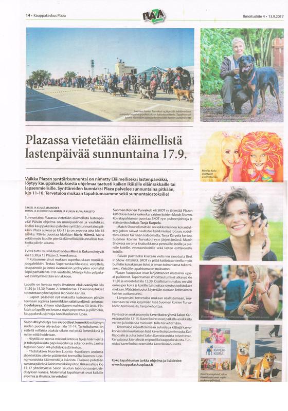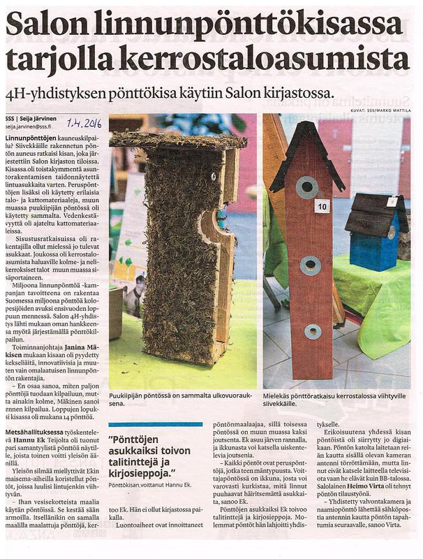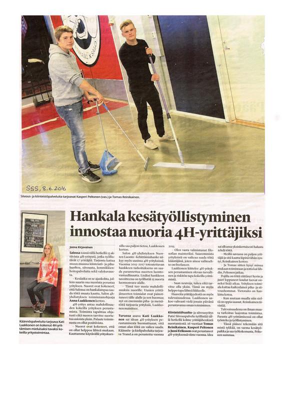 Juttua hankkeesta yhdistysesittelyssä Salon Seudun Sanomien Salon messuja esittelevässä messuliitteessä 17.1.2018.