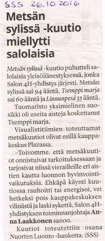 Juttu Tehdään yhdessä -tapahtumasta Salonjokilaaksossa 23.11.2017. 4H toteutti Minimetsäkuutiopajan ja siihen liittyvän Instakilpailun sekä Mikä täällä asuu -kilpailun.